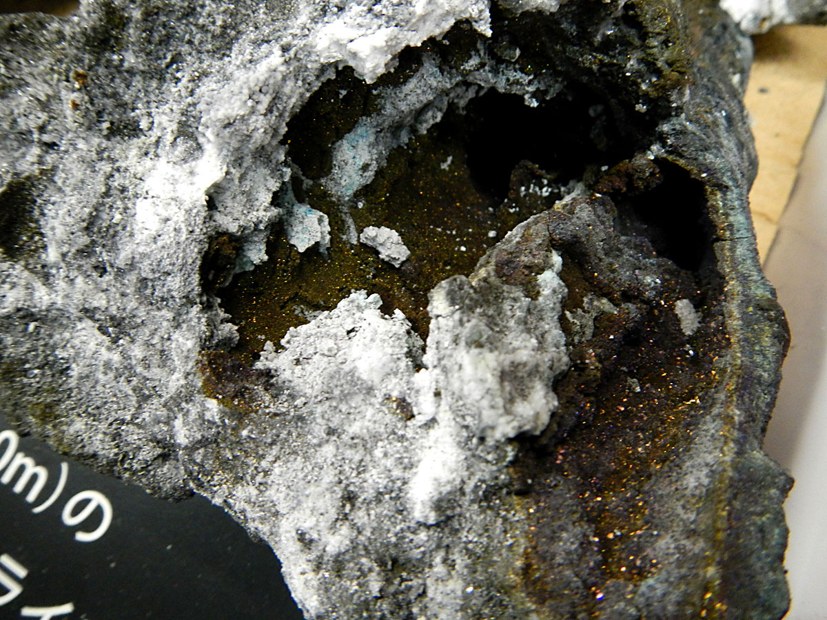 ちなみに左の大きいのがデッドチムニーといって、深海底で既に噴くのを止めてしまったチムニーを持ってきたモノで、右のダブルチムニーが元気に活発に噴いていたモノだ。陸上ではどちらも死体ということになるのだろうか。